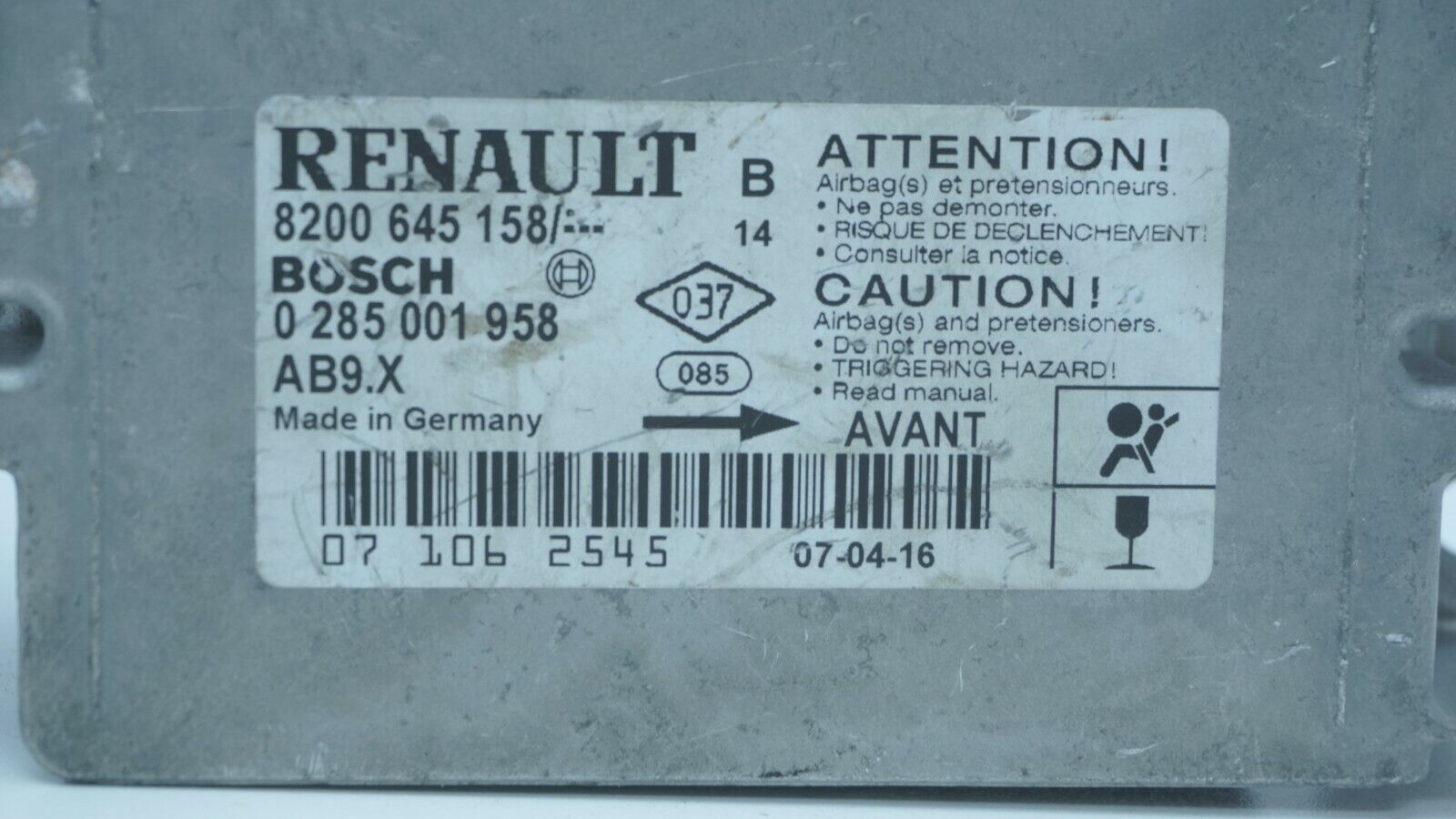 CENTRALITA ECU AIRBAG RENAULT 8200645158 8200 645 158 0285001958 0 285 001 958